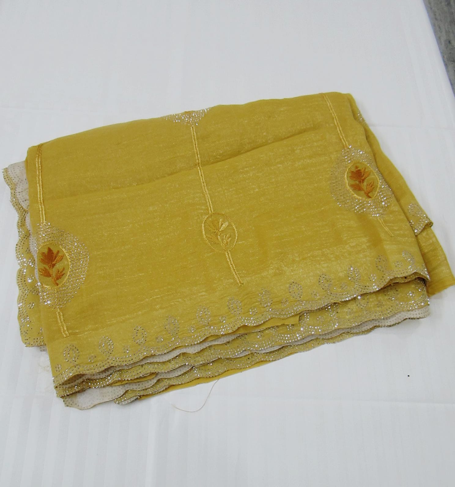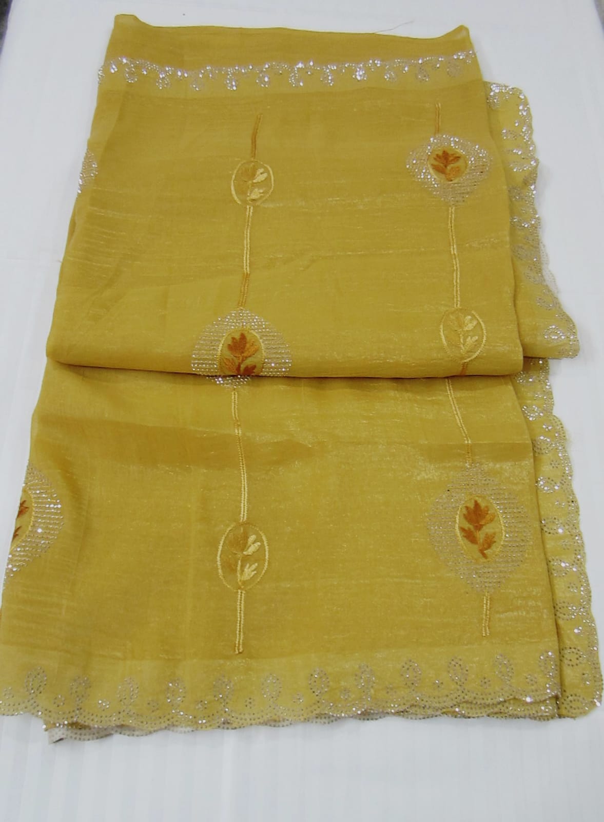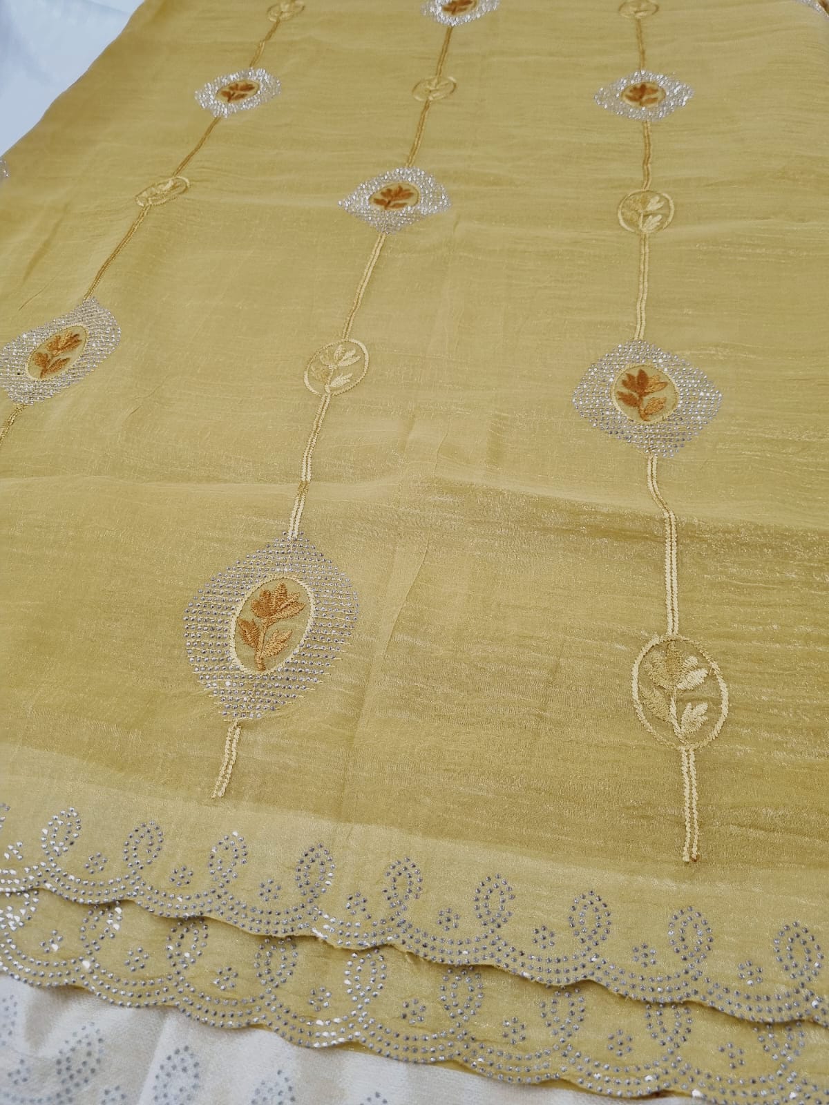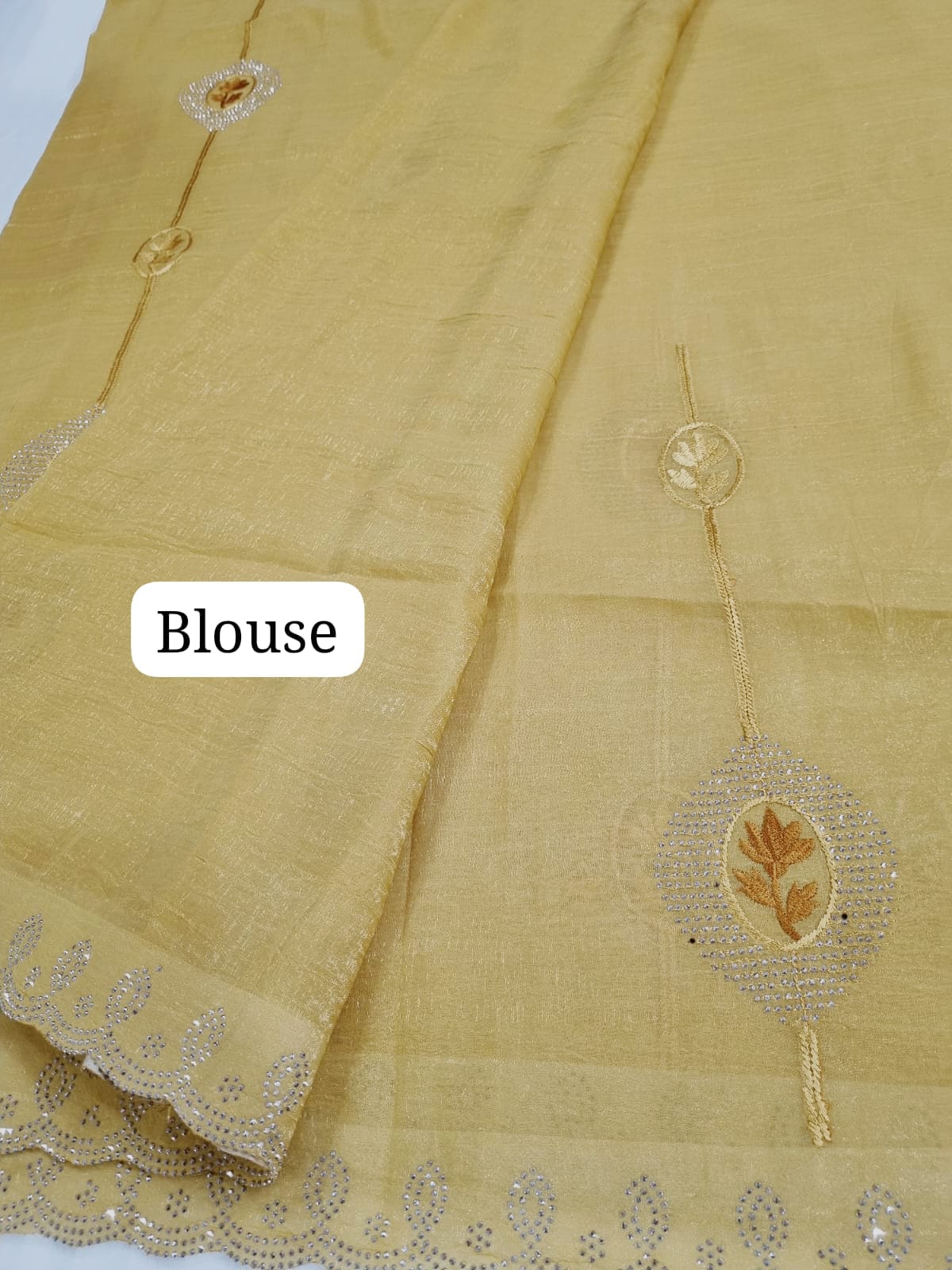 Crush Tissue Designer Saree with embroidery and stone work (with blouse piece) Soft, elegant & perfect for parties. Don’t miss out!! \